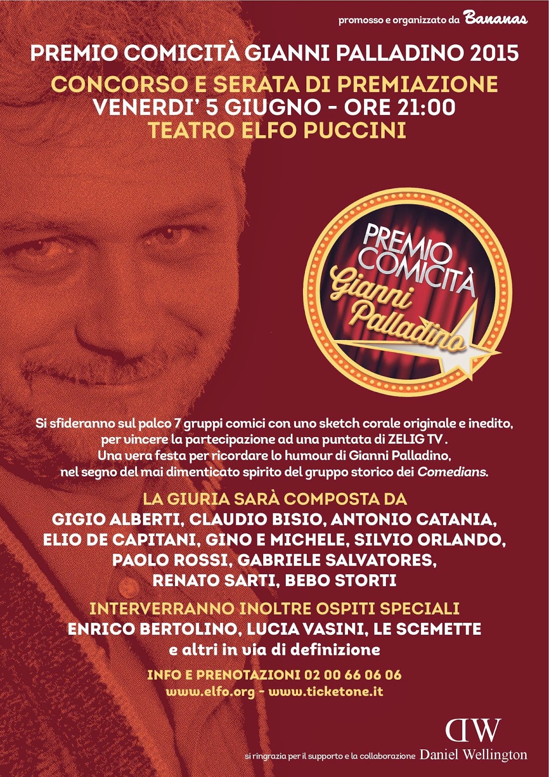 Si, perchè grazie a lui sono nati oppure erano già nati, ma si sono fatti "vedere" dei nuovi attori che hanno affidato il loro talento alla comicità, privilegiando il lavoro di gruppo. Gianni era un attore completo, ma in fondo aveva fatto la stessa cosa: i suoi inizi, come quelli di tanti altri attori che sono diventati così importanti per il teatro, il cinema e la televisione italiana, sono stati segnati da una opera teatrale che si chiamava Comedians. E saranno proprio gli storici Comedians a comporre la giuria d'eccezione: Claudio Bisio, Gino & Michele, Paolo Rossi, Bebo Storti, Renato Sarti e Elio De Capitani, che di quel gruppo insieme a Gianni erano i protagonisti. In giuria ovviamente anche Giancarlo Bozzo, direttore artistico dello Zelig Cabaret di Viale Monza 140 e ideatore del Premio Palladino insieme ad Alessio Tagliento.