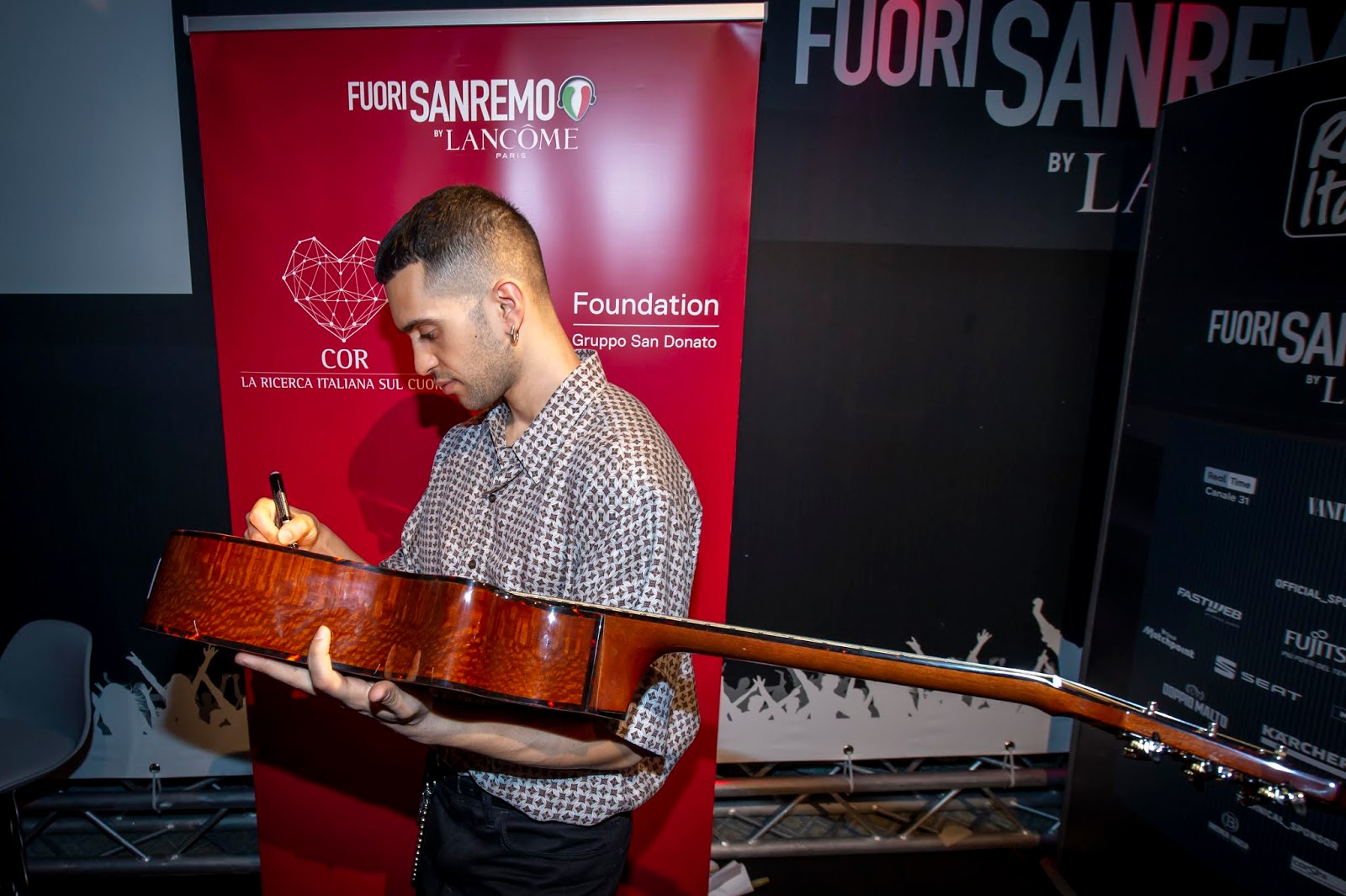 Tutti gli artisti presenti al Festival di Sanremo firmano una chitarra per beneficenza a favore di “COR, LA RICERCA ITALIANA SUL CUORE un progetto di GSD FOUNDATION per la ricerca sulle malattie cardiovascolari.